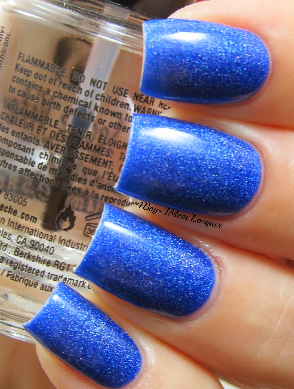 This is a dark holographic blue. This color really displays the color of the rainbow when out in the sun. I applied 3 coats with a topcoat.